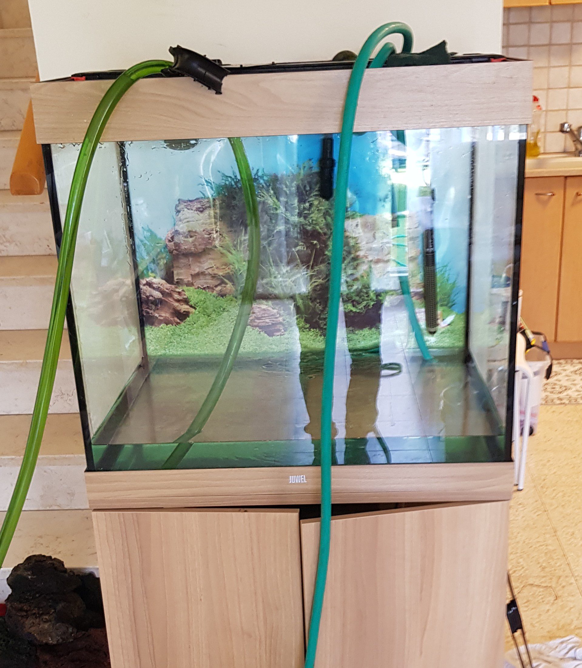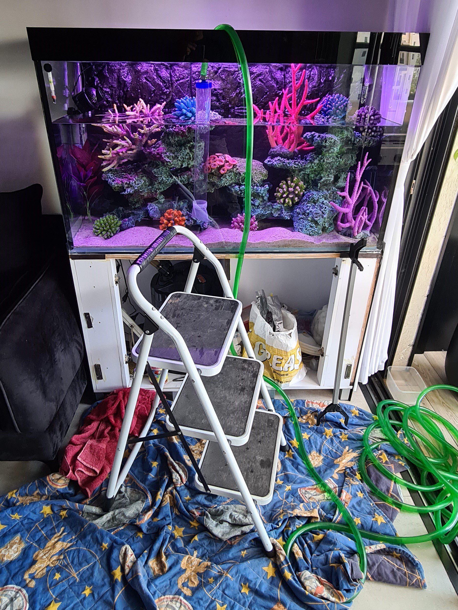 - רענון והחלפה של 30-40 אחוז מי האקווריום ואיזונם ע"י הוספת תכשיר אנטי-כלור למי הברז והוספת תכשיר בקטריות למים.