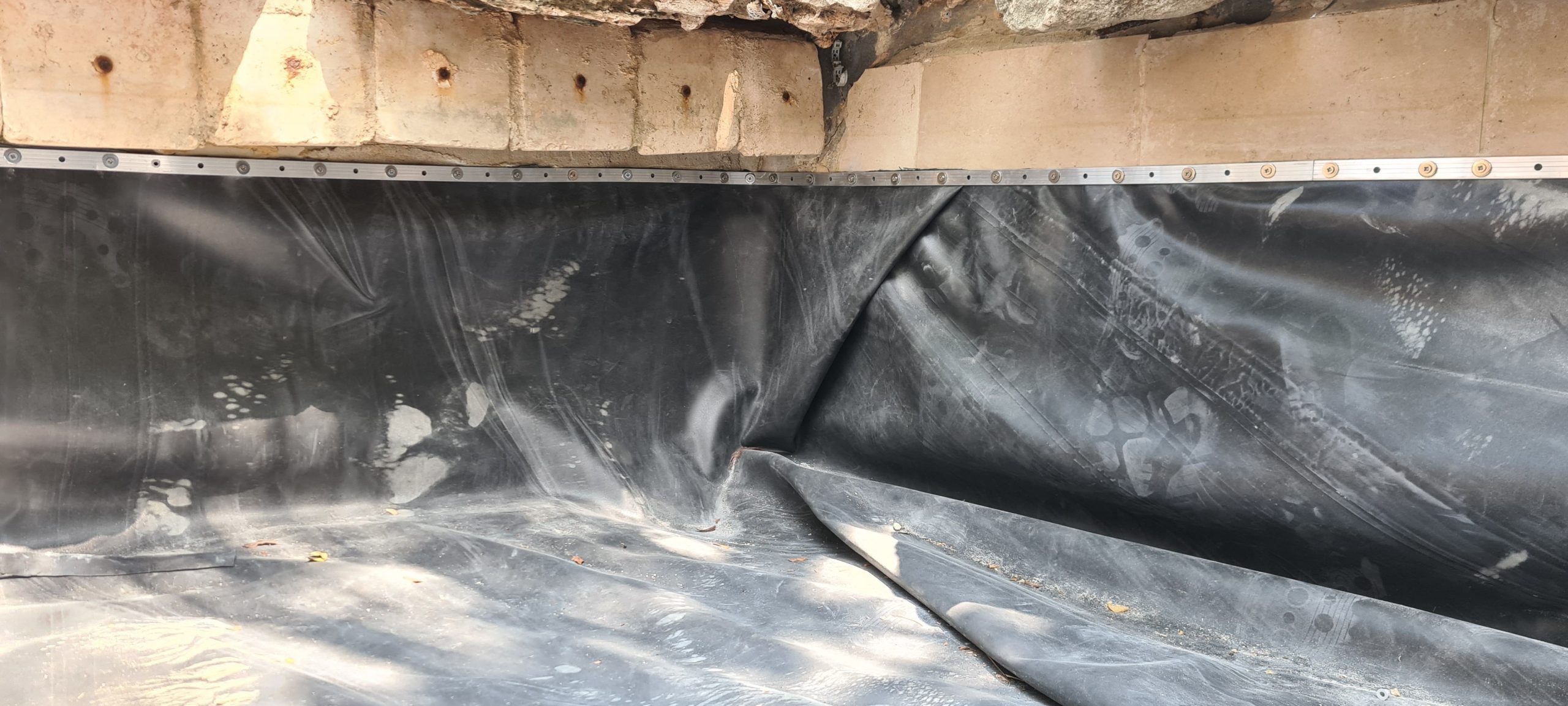 - הסרת אצות מדפנות בריכת הנוי והמפל על ידי מכשיר לחץ מים "גרניק".